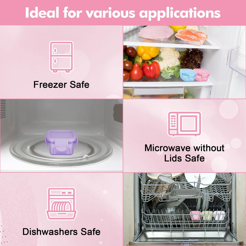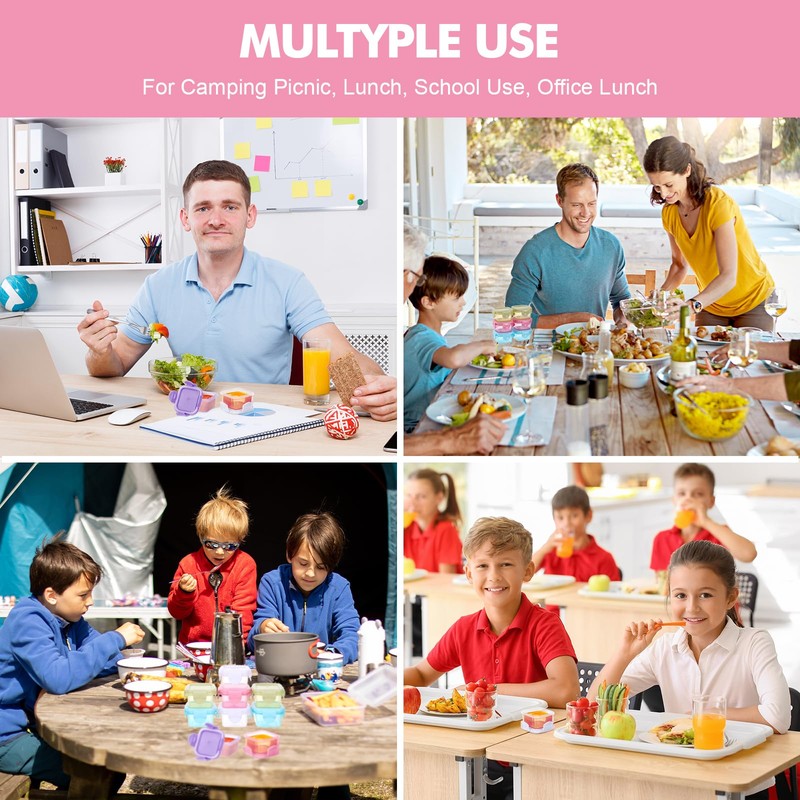 •  Cute and Elegant Design - These food containers have a pretty appearance with macaron colours lids, which will embellish your sauce or snacks, making them look very appetizing.