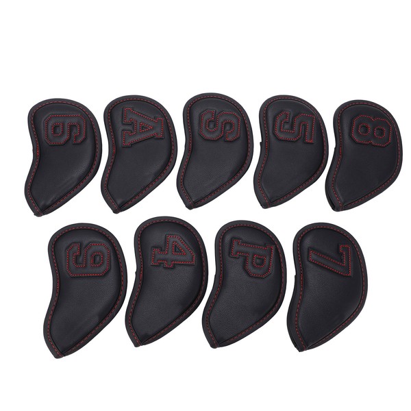 9Pcs/Set Golf Iron Head Covers Waterproof Sunscreen Golf Iron Covers Big Figures Protective SleevesBlack