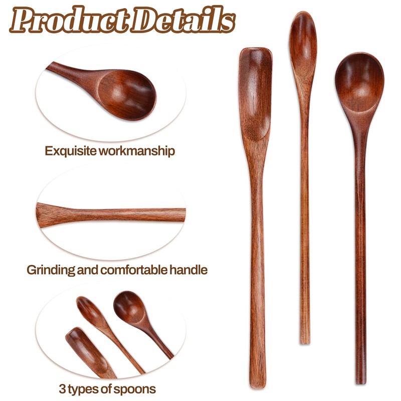 - 【Super Value Pack】Our wooden spoons are 9 pcs in 3 different styles, small size is 20.5 x 1.7cm/8.07 x 0.7in, medium size is 20 x 2.2cm/7.87 x 0.9in, large size is 20 x 3cm/7.87 x 1.2in, 3 spoons for each style, which can satisfy your different needs for daily use in sufficient quantities, which is a great choice for stirring coffee or honey.