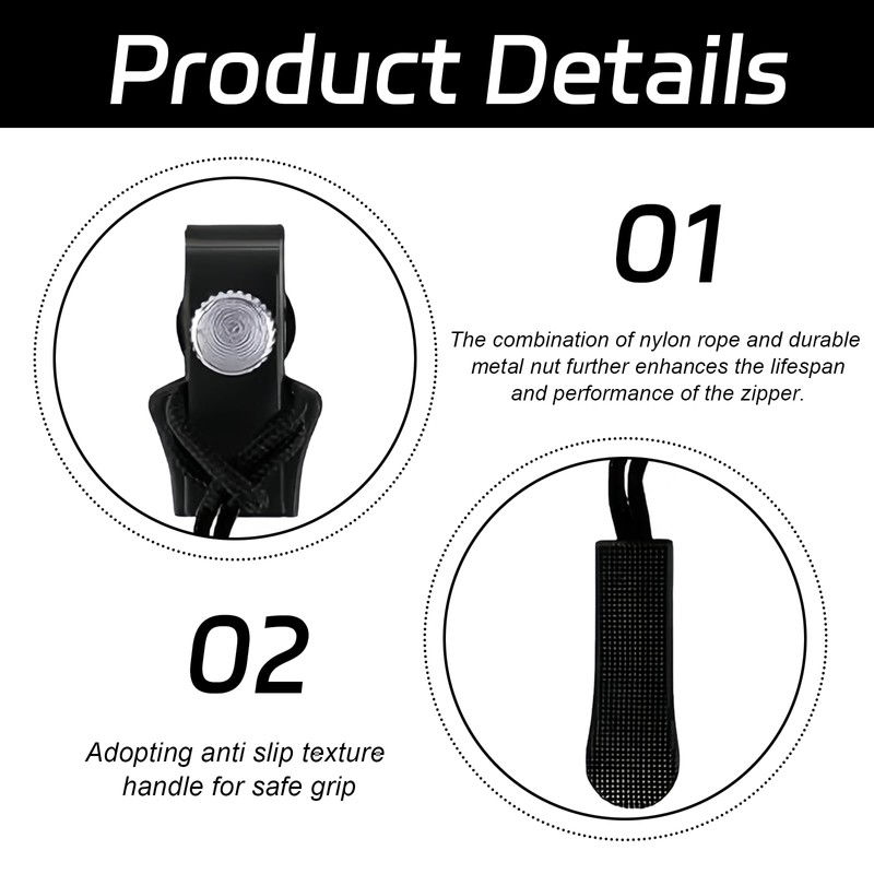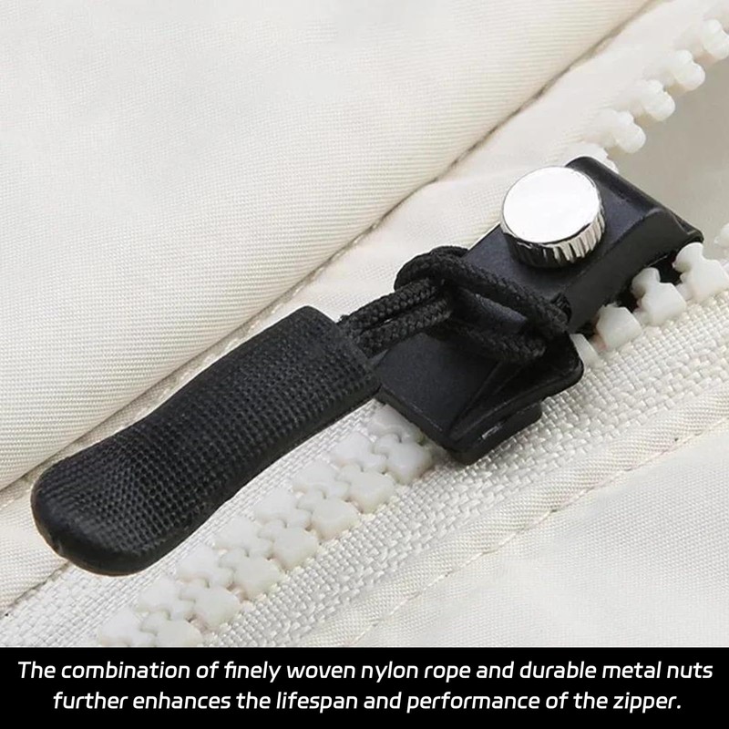 - 【Premium Material】The zipper repair kit feature an anti-slip textured handle that offers a secure grip. The combination of finely woven nylon cord and a durable metal nut combination further enhances the zipper's longevity and performance