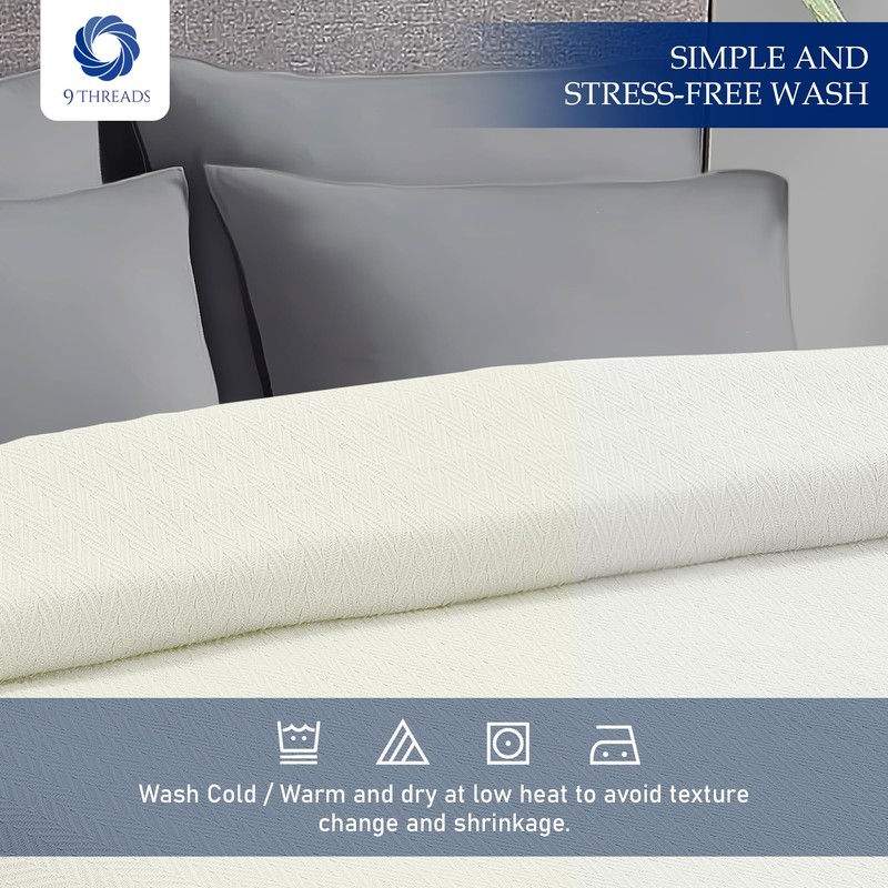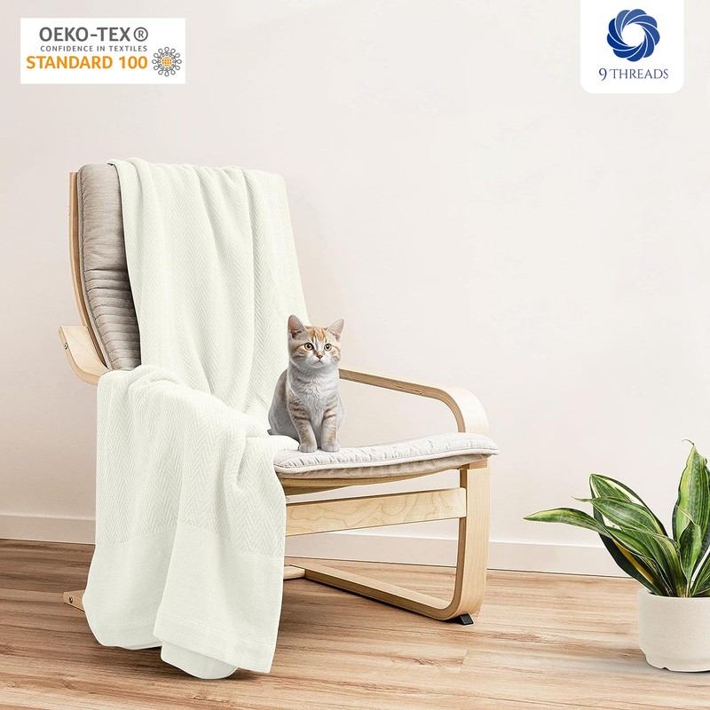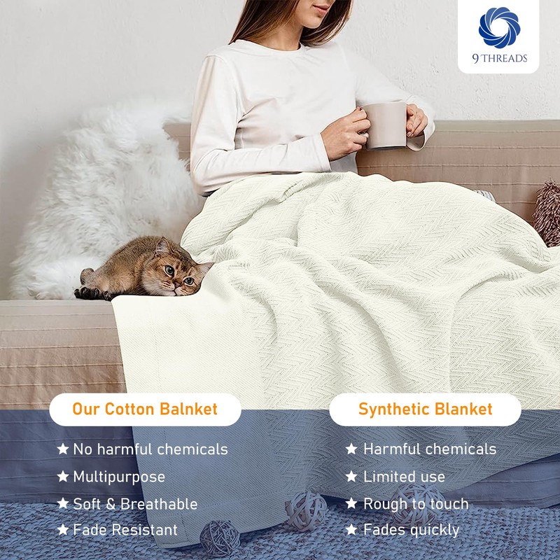 9Threads Multipurpose Blanket, King Size 100% Extra Long Staple Cotton, Herringbone Weave, Tusk, Soft & Breathable, Ideal for All Seasons