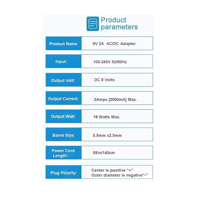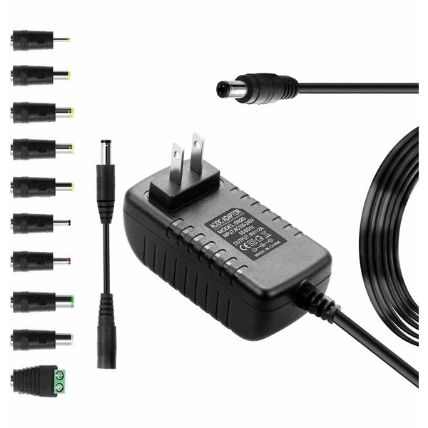 - 【Package includes】1 x 9V 2A ac/dc adapter, 10 more Tips and 1 Reverse Polarity Converter Cable. Built-in multiple safety protection systems and safe to use. If you have any questions about the product, please do not hesitate to contact us before returning. We always support and provide excellent after-sales support!
