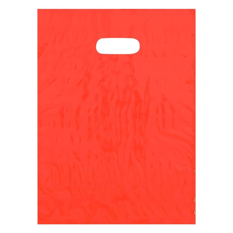 9x12 Orange Die Cut Handle Plastic Shopping Bags 100/cs