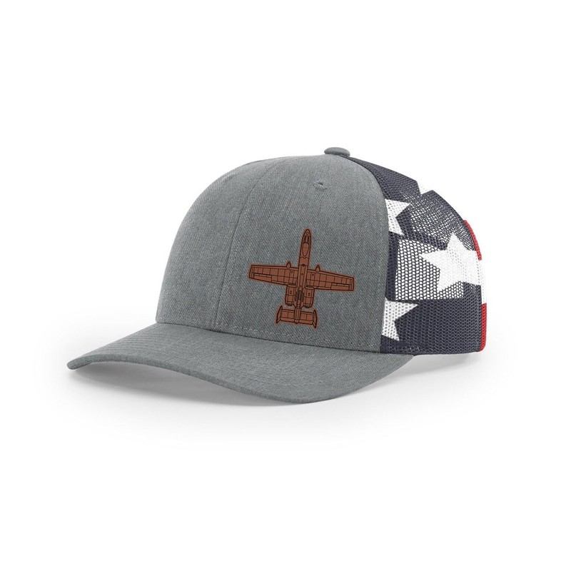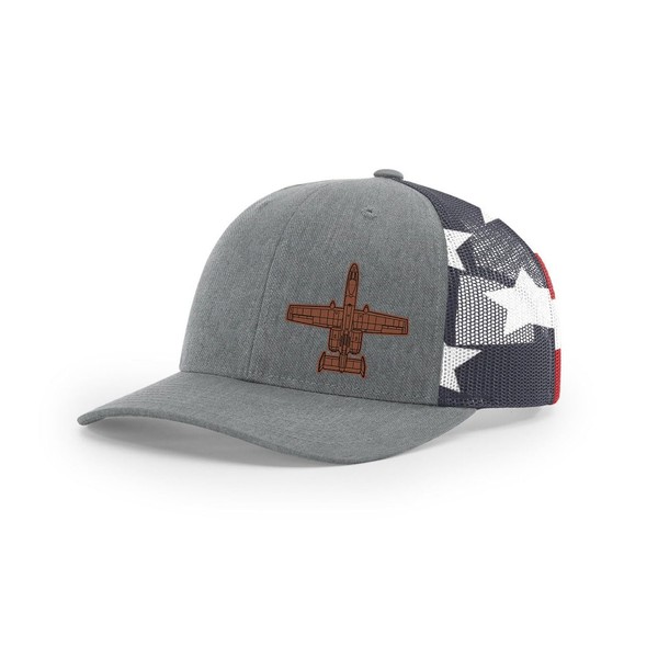 A-10 Thunderbolt II Warthog Side Panel Laser Engraved Leather Patch Richardson 112 Snapback Trucker Hat Cap Heather Grey Stars & Stripes