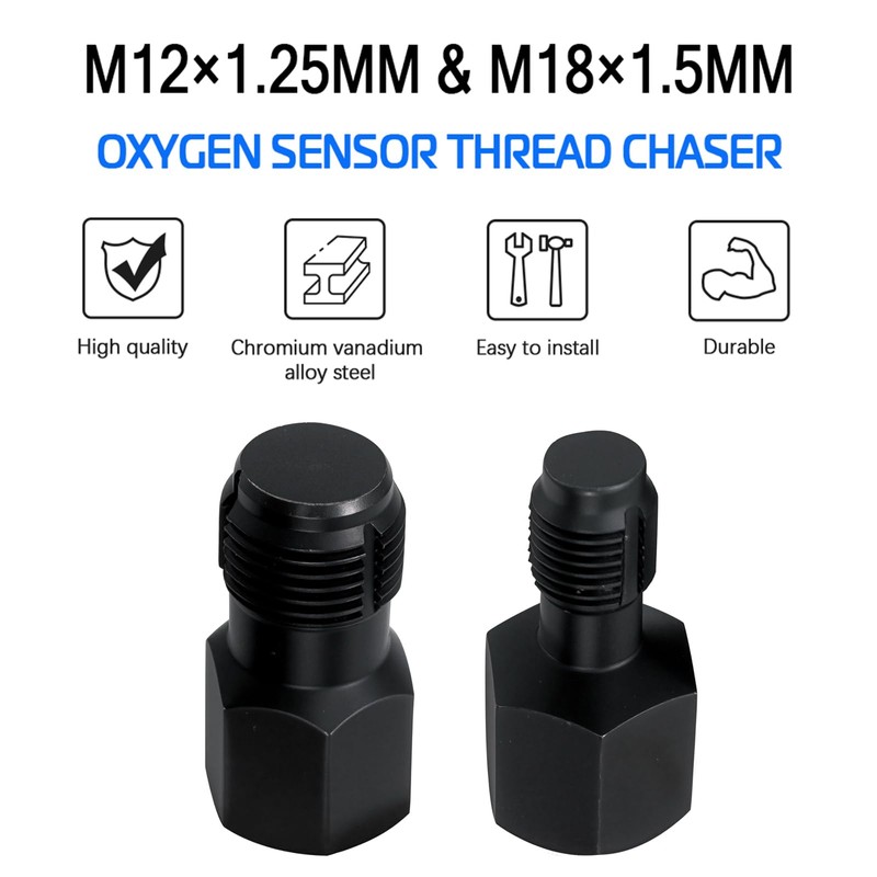 2PCS Oxygen Sensor Thread Chasers M18 x 1.5mm and M12 x 1.25mm thread chasers with 3/8” drive to clean and repair damaged threads