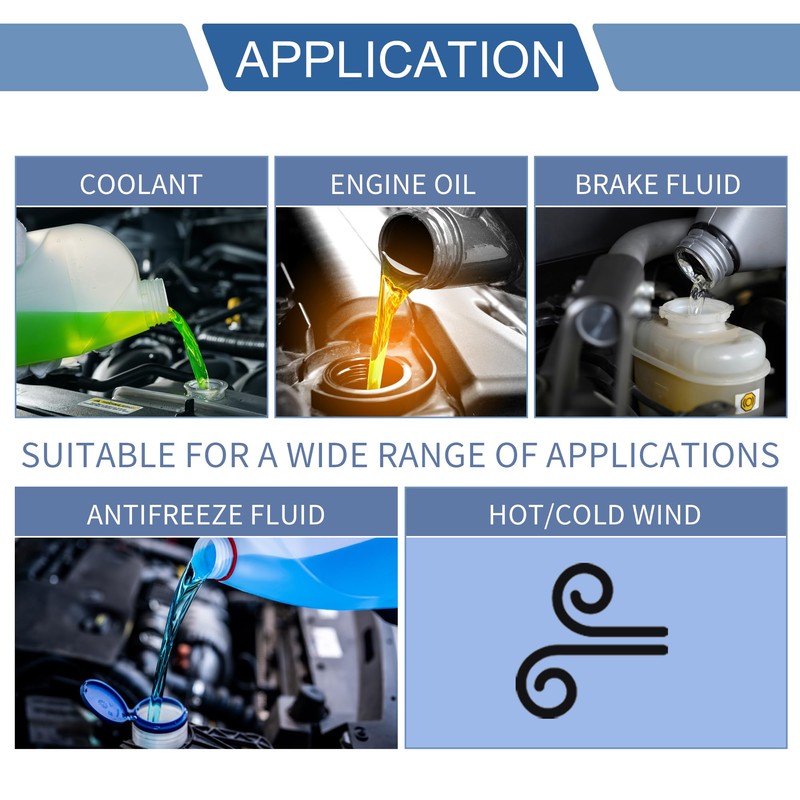 - [Anwendung] Geeignet für Kühlmittel, Motoröl, Bremsflüssigkeit, Frostschutzmittel, Heiß-/Kaltluft usw.