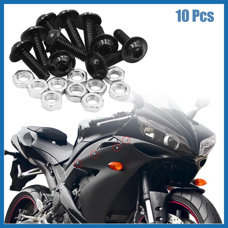 A ABSOPRO 10pcs M6 Black Aluminum Alloy Hex Socket Head Motorcycle Bolts Bumper Screws Nuts Universal Replacement Item Replacement