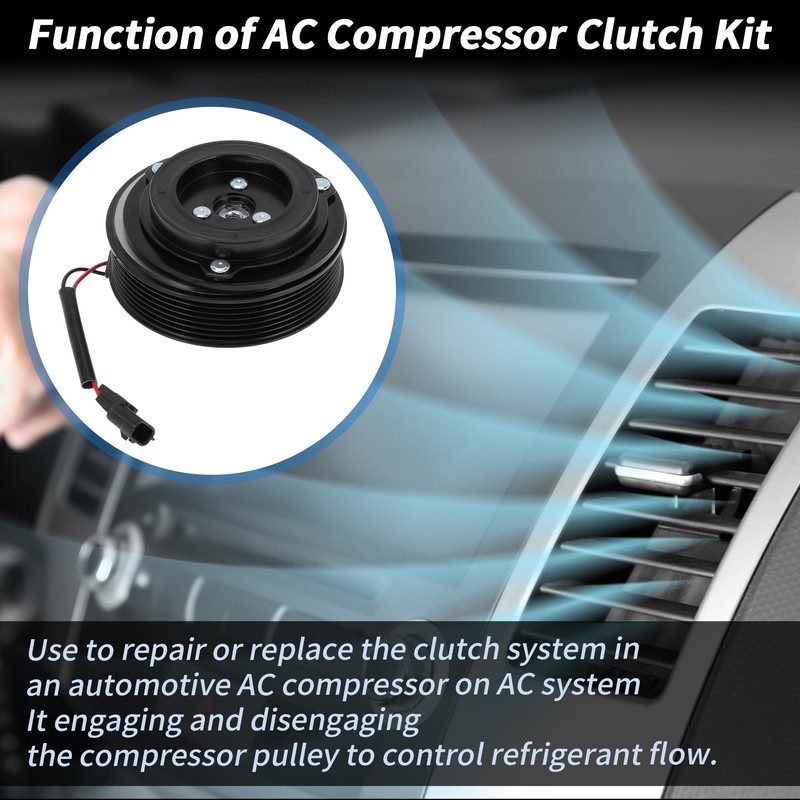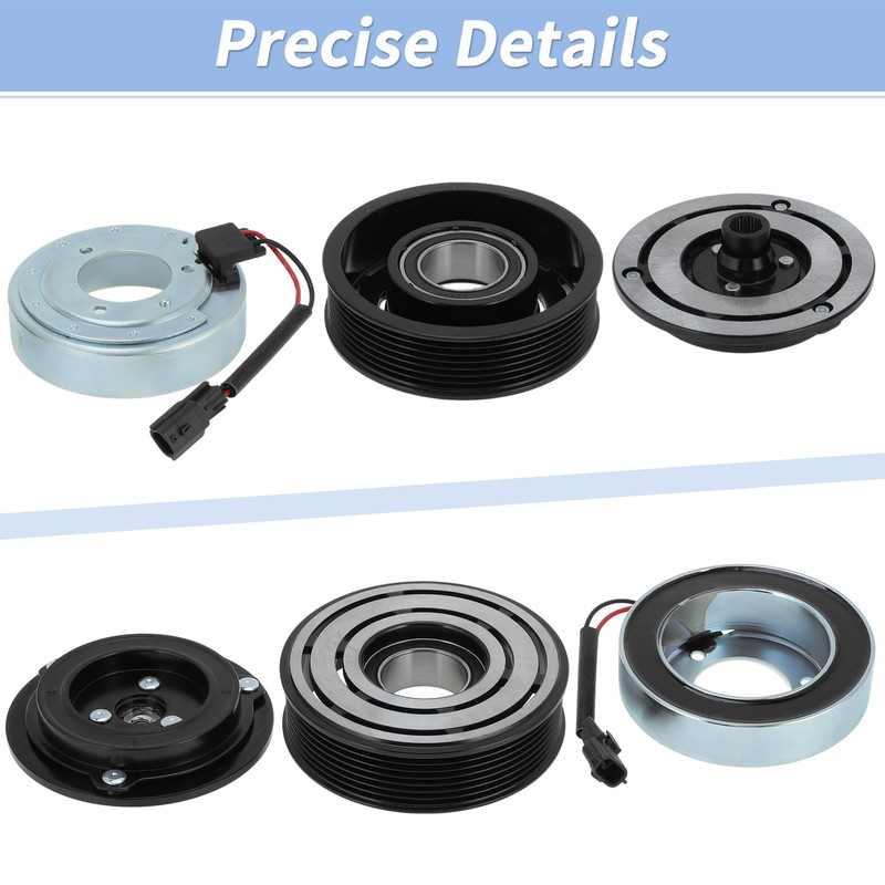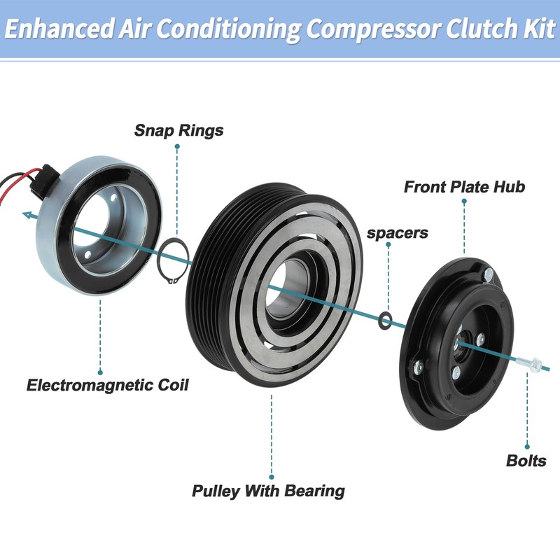 • [Reliable Quality] Steel Clutch Pulley Contains a sealed ball bearing for Rotates with the serpentine belt when the AC is off. Steel Clutch Hub for Engages with the pulley when the coil is energized, turning the compressor shaft. Steel Clutch Electromagnetic Coil with Copper inner for Generates a magnetic field to engage the clutch. Spring steel Snap Rings & Shims for Adjusts the air gap between the clutch pulley and hub, Secures components in place.