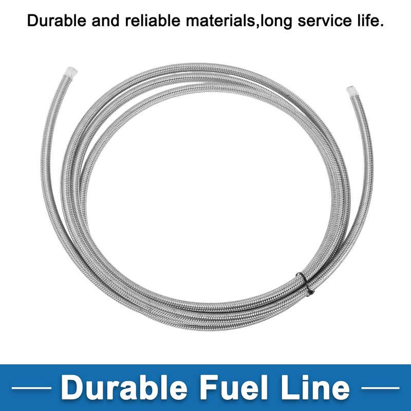 A ABSOPRO AN6 Fuel Line Hose 6AN 12ft Vacuum Hose Automotive Fuel Hose PTFE Rubber,Stainless Steel Silver Tone 1 Pcs
