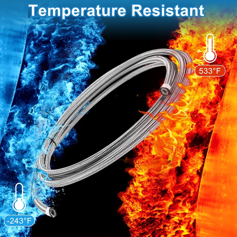 - Product Size: Length: 366cm/12ft; Hose Inner Diameter: 8mm; Hose Outer Diameter: 10.8mm; Hose Hole Size: AN6