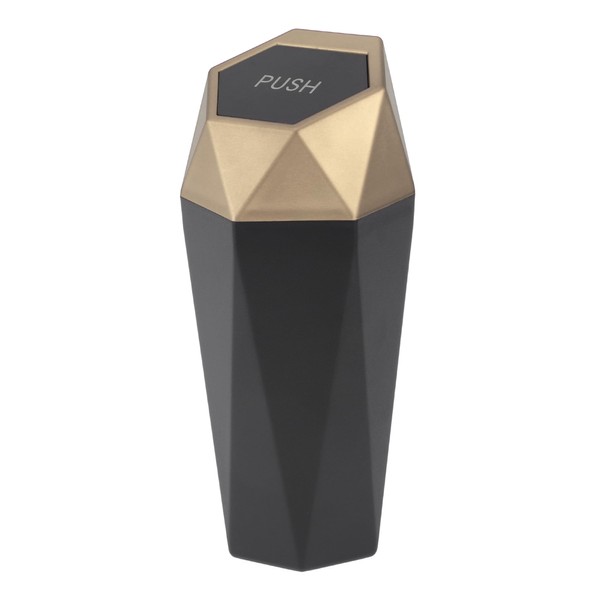 A ABSOPRO Car Trash Can Portable 3.5" Width 7.9" Height Trash Bin Plastic Gold Tone 1 Pcs
