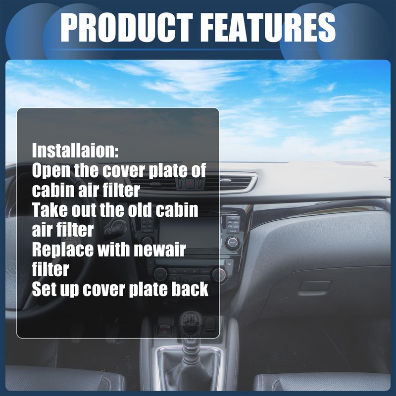 - EASY TO INSTALL Conveniently designed cabin air filter for quick and hassle free access.