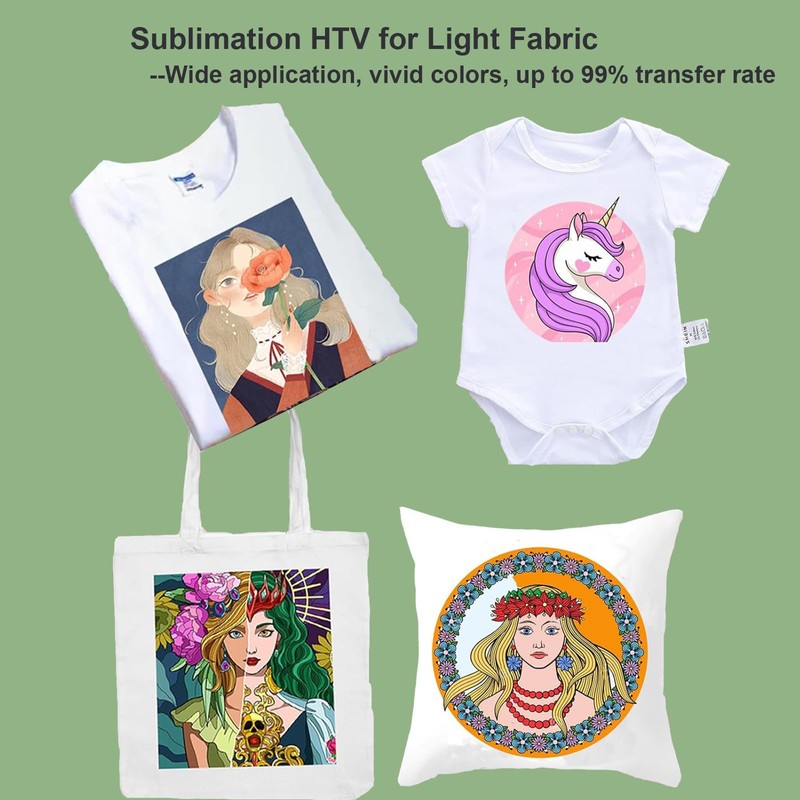 - Upgraded for Cotton Fabric: This clear HTV vinyl for sublimation is designed for light color cotton fabric, high quality vinyl material texture. It is strong and carries a transparent visual impact