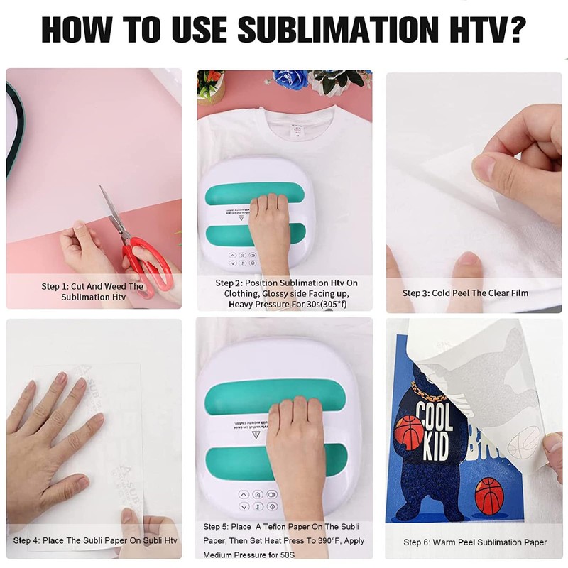 - Washable and Fade-resistant: This clear sublimation htv iron on vinyl is durable enough to withstand after repeated washings, exposure to the sun and rain without fading, yellowing, cracking and peeling