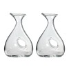 Product Description: Serve the perfect glass every time with these handsome wine decanters. These thick glass decanters feature a curvaceous shape sure to capture attention with a carefully crafted mouth for easy pouring. Each set includes two matching pieces to accommodate the tastes of all your dinner guests.