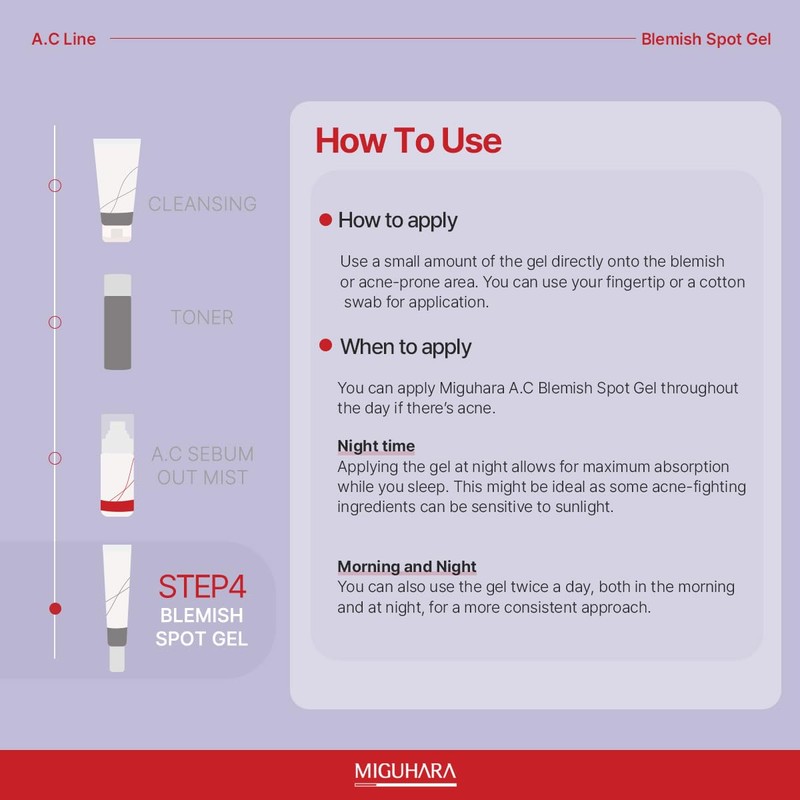 - A Non-sticky and Fast Absorbing Spot Gel so it does dry out the skin, and easily absorbed into the skin with a fresh feeling.