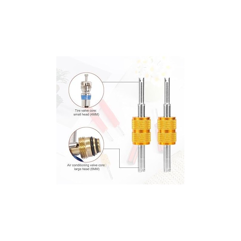 - Wide Application: The air conditioning valve core remover tool adopts single head and double head design and the ac valve core remover tool can be used to dismantle valve cores of cars, air conditioners, tires, trucks, motorcycles, bicycles, electric vehicles, etc.