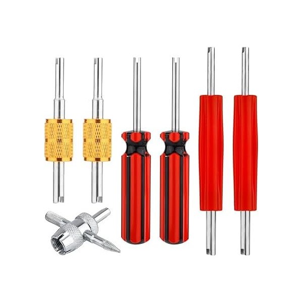 - Package Content: You will receive 7 pieces of valve stem remover tools, including1pc 4-way valve tool, 2pcsdouble-ended gas wrenches, 2pcs single-ended gas wrenchesl and 2pcs mini double-ended gas wrenches. The tire valve stem remover tools are made of plastic and stainless steel, sturdy and reliable.
