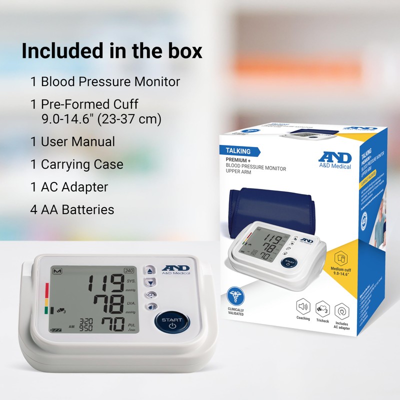 - HOME BLOOD PRESSURE MONITOR WITH TALKING FUNCTION: The A&D Medical Talking Blood Pressure Machine with TriCheck mode averages 3 consecutive readings for best accuracy. The adjustable medium cuff fits upper arms with a circumference ranging from 23-37 cm