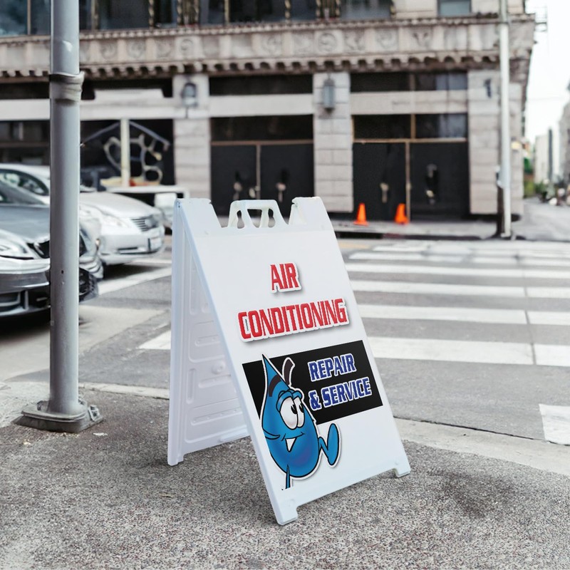 A-Frame Sidewalk Air Conditioning Repair & Service 24" x 36" Double Sided A-Frame Sidewalk Sign, Includes 2 Plastic Inserts | Foldable Portable White Signicade Sandwich Board Signs