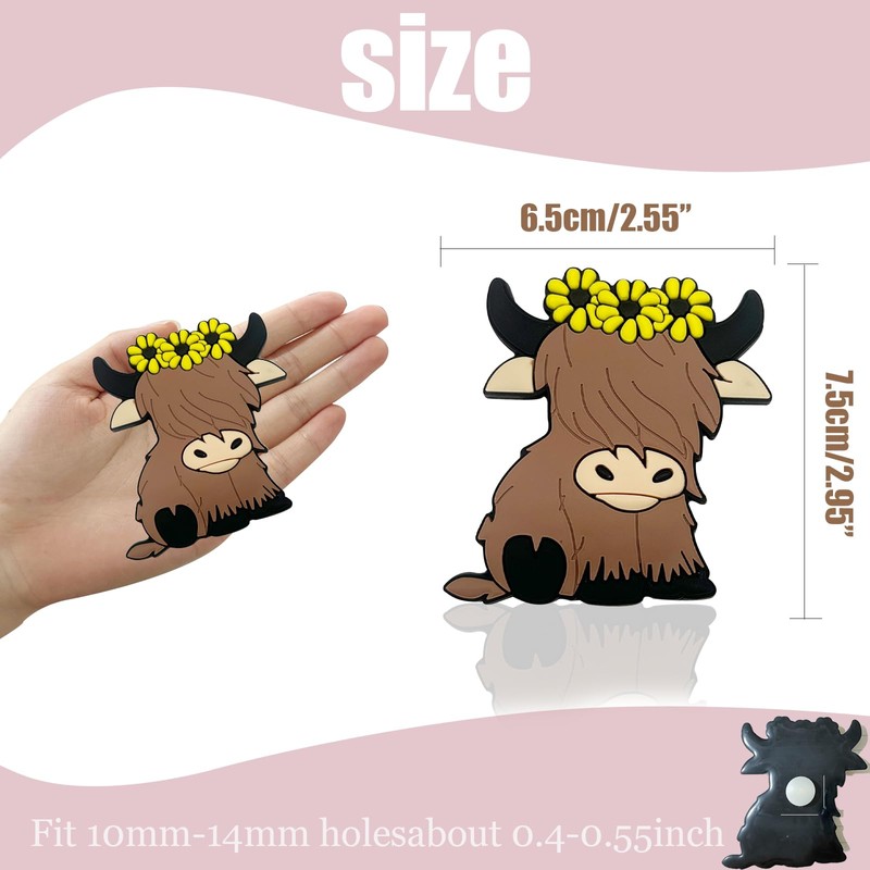 A&H Zier Bag Accessories Silicone Charm for Bogg Bag Fade-Resistant 0.5cm Thick Compatible With Most Bogg Bag (Highland Cow)