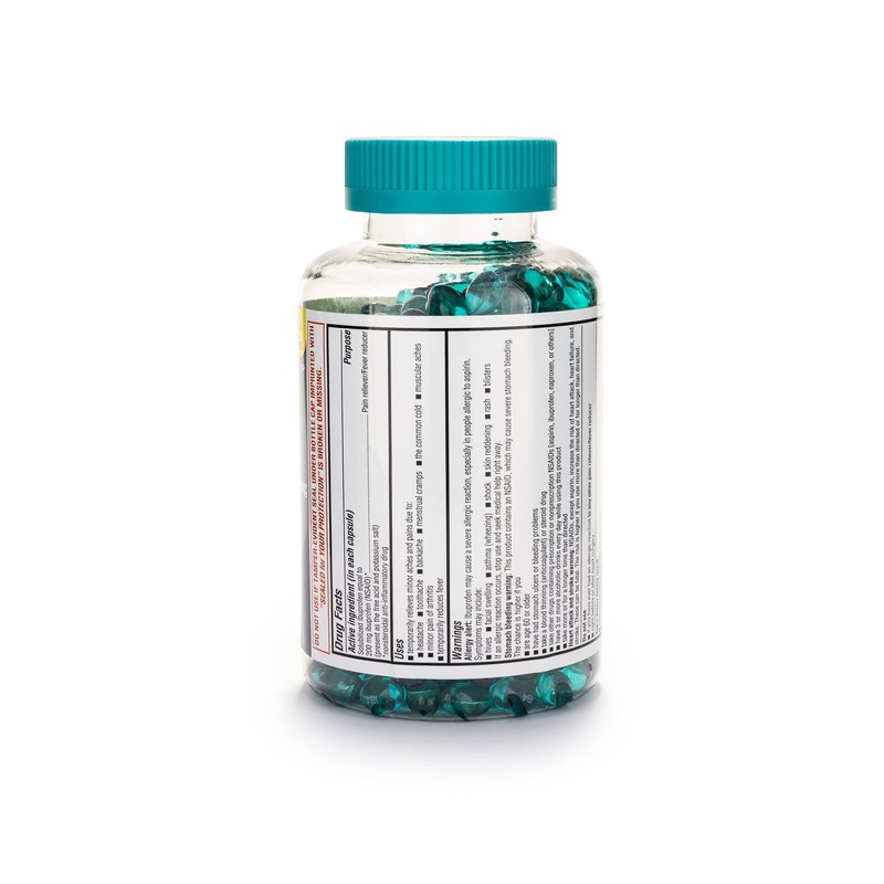 Our A+ Health Mini Ibuprofen Softgels are designed to reduce fever symptoms and provide temporary relief from minor aches and pains due to headache, toothache, backache, menstrual cramps, the common cold, muscular aches, and minor pain of arthritis. Proudly made in the USA using ingredients originating from various countries, A+ Health Ibuprofen Mini Softgels contain the active ingredient Ibuprofen 200mg which compares to the active ingredient in Advil LIQUI-GELS Minis. The smaller capsule provides the same strength. Ibuprofen is an NSAID (nonsteroidal anti-inflammatory drug) that is designed to reduce fever symptoms and alleviate aches, pain and inflammation. Whether you have minor arthritis pain or other aches or pains, you can find relief with A+ Health Ibuprofen Mini Softgels.