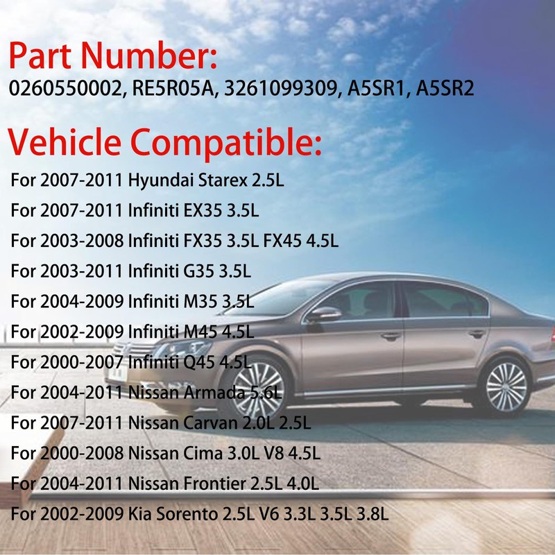 - ✅Reference OEM Number: 0260550002 RE5R05A 3261099309 A5SR1 A5SR2.【NOTE】Please check the part number and vehicle model to ensure the product fits your needs.(No Program, Plug and Play)