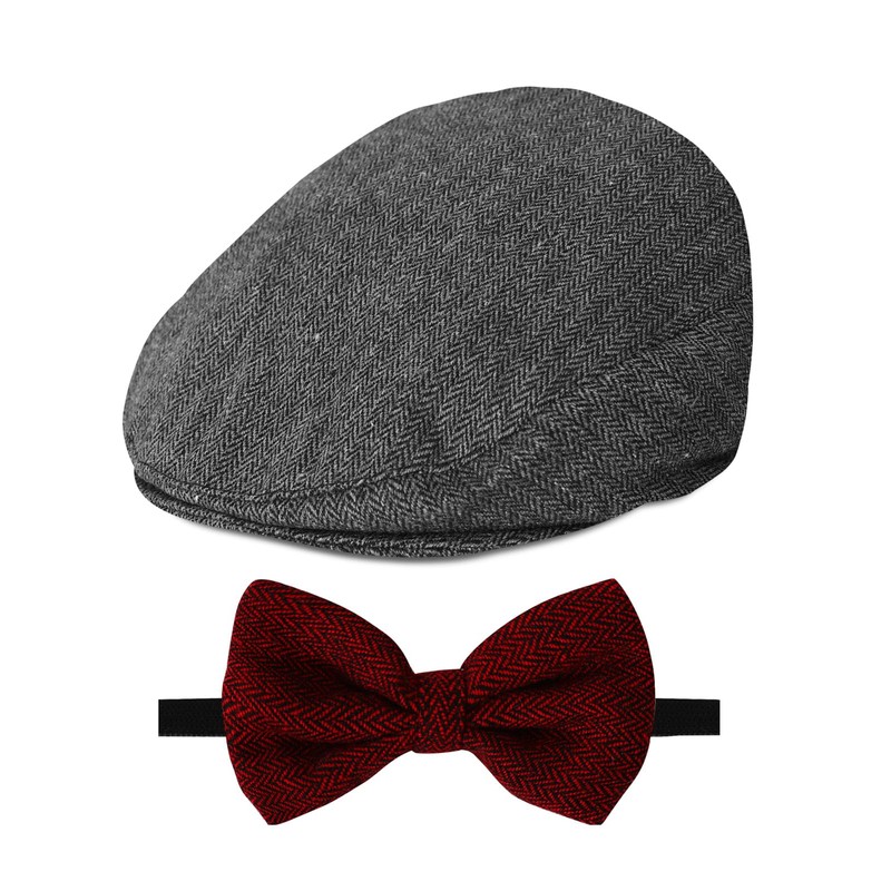 A&J DESIGN Newsboy Hats for Boys Infant Flat Scally Irish Cap with Bow Tie Set Black and Red 3-6 Months