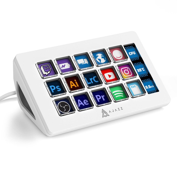 A.JAZZ AKP153 Stream Studio Controller Stream Dock-Type-c con Cable con 15 Teclas LCD Macro y 1 visualización Lateral Soporte Desmontable para múltiples acciones activadas en Win Mac Twitter(Blanco)