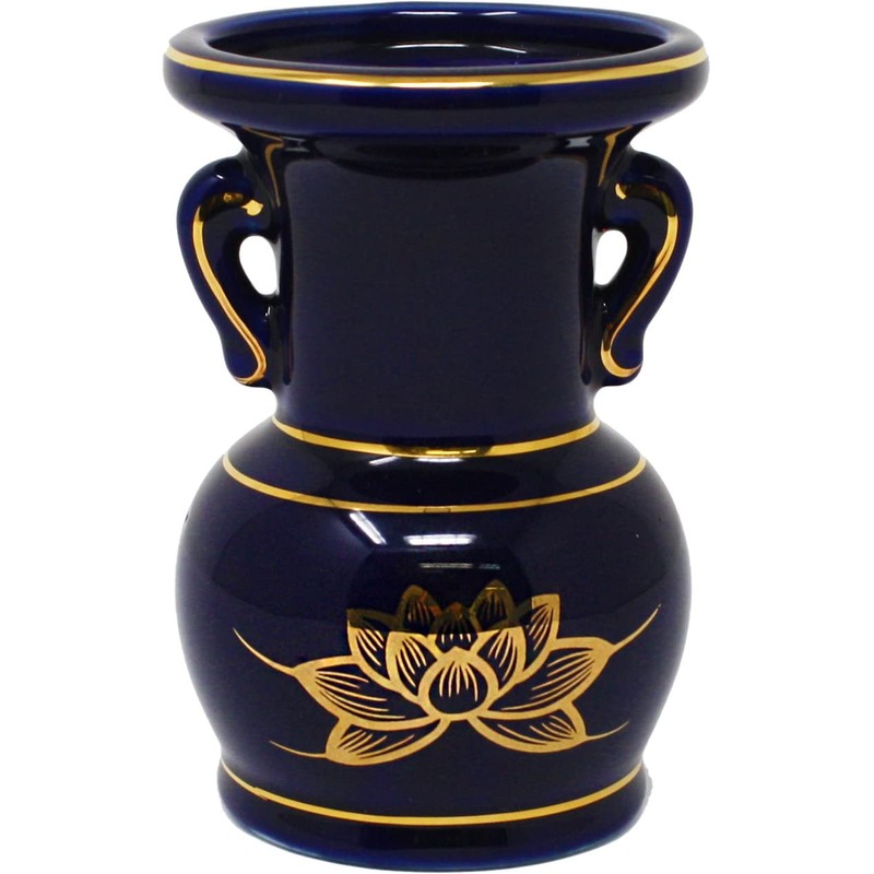 A&K Buddha Flower Stand, 2 Piece Set (One Pair/Lapis Gold/Lotus/Navy), For Buddhist Altar, Vase, Vase, Offering (Diameter 2.8 inches x Height 4.1 inches (7 cm) x Height 4.1 inches (10.5 cm), Flower