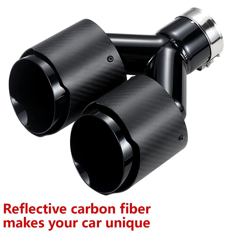 A-KARCK Carbon Fiber Exhaust Tip 2.25" Inlet to Dual 3.5" Outlet, High Temperature Resistance 9.8" Long Stainless Steel Tailpipe tip, Set of 2