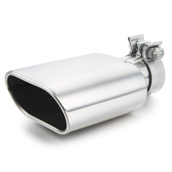 2.25" ID EXHAUST TIP: 2.25" inlet 3" x 5.5" outlet 9.5" overall length exhaust tip, universal fits 2.25" outside diameter tailpipe.