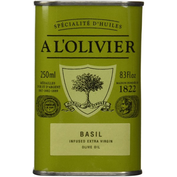 A L'Olivier Olive Oil Infused with Basil, 8.3 Ounce Tin