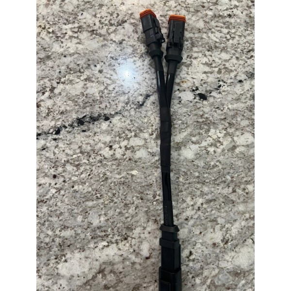 wire color : Red-Black Y-split waterproof 2 pin splitter Connector color: Black Wire length :11 in total lengthY-split one receptor and two male connector as shown in pictureWire gauge: 16 AWG pure copper stranded Marine tin coated copperConnectors :DT E008 Series Deutsch end boatSKU:W2008