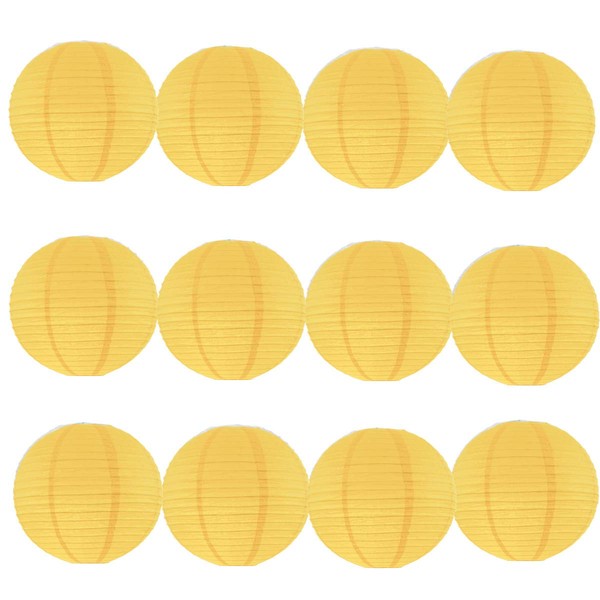 A Liittle Tree 12 PCs Round Paper Lanterns Wedding Party Christmas New Year (Yellow, 8")