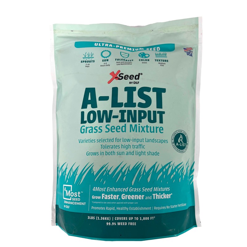 A-List Low Input Mixture Lawn Seed - Premium Grass Seeds for Lawn Repair Over Seeding and Thickening Ideal for Low Maintenance Drought-Resistant Lawn for High Traffic Sun and Light Shade Mix, 3 Pounds