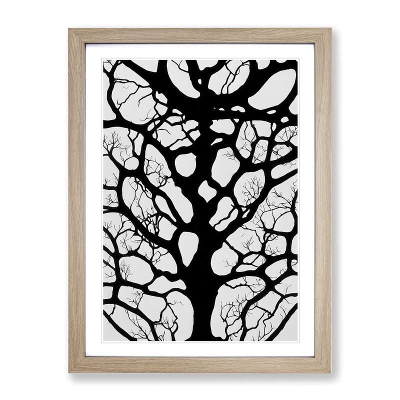 A Monochrome Tree No.4 Framed Print for Living Room Bedroom Home Office Décor, Wall Art Picture Ready to Hang, Oak A4 Frame (34 x 25 cm)