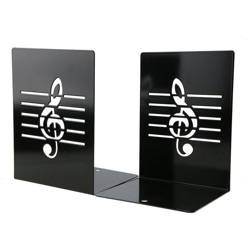 A Pair Black Fashion Creative Music Note Solid Metal Book Stand Bookends for Kids Music Lover Home Office Decoration