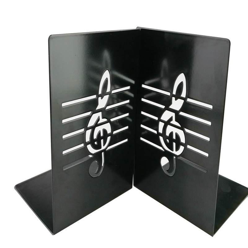 A Pair of Fashion Creative Music Note Solid Metal Book Stand Bookends For Kids Music Lover Home Office Decoration (Black)