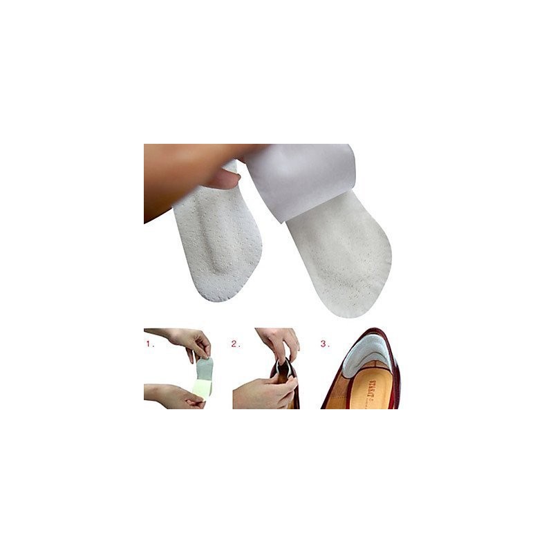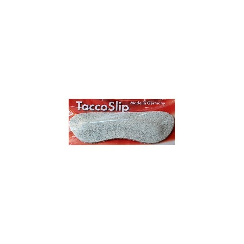 A PAIR OF TACCOSLIP TACCO SLIP FOOTCARE HEEL PROTECTORS. HEEL GRIPS HEEL GRIP SMOOTH AS VELVET. LIGHT GRAY COLOR. SUEDE LIKE TEXTURE. STOPS HEELS FROM SLIPPING. MADE IN GERMANY.
