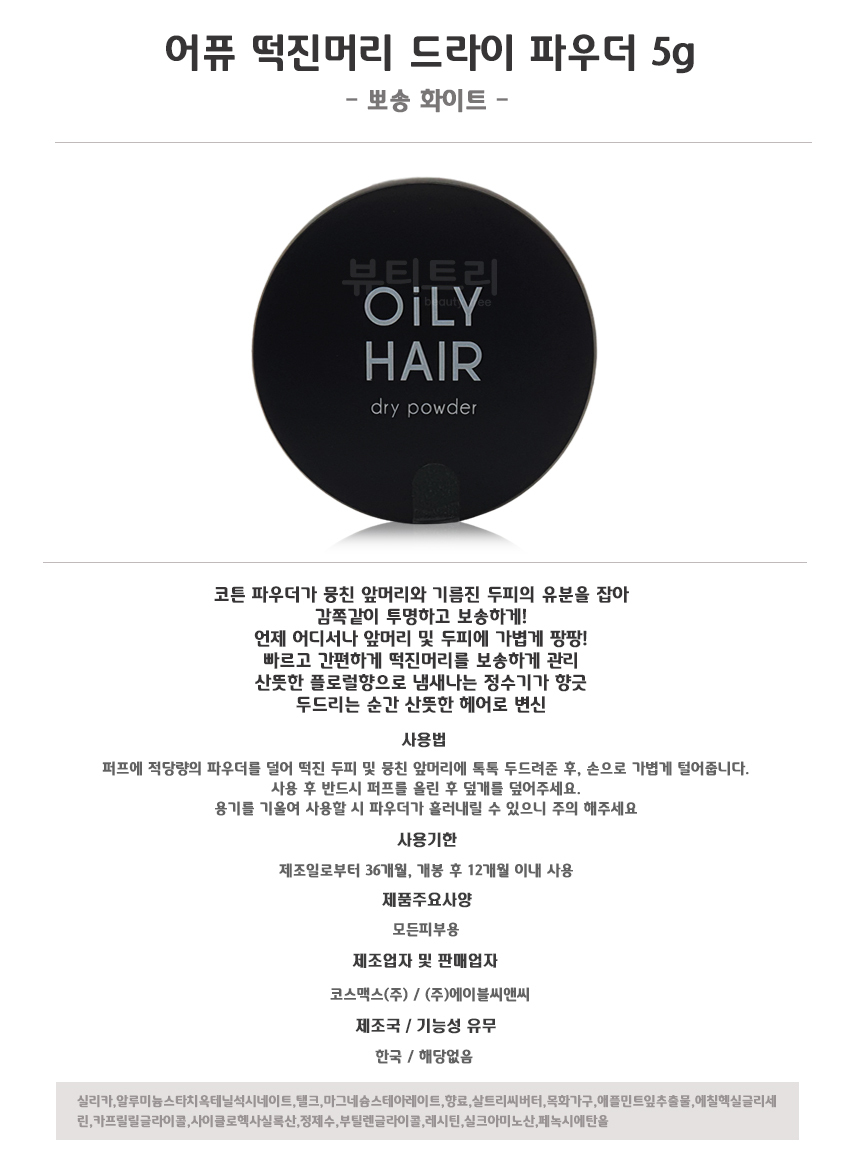 A'Pieu Greasy Hair Dry Powder 5g / 어퓨 떡진머리 드라이 파우더 5g