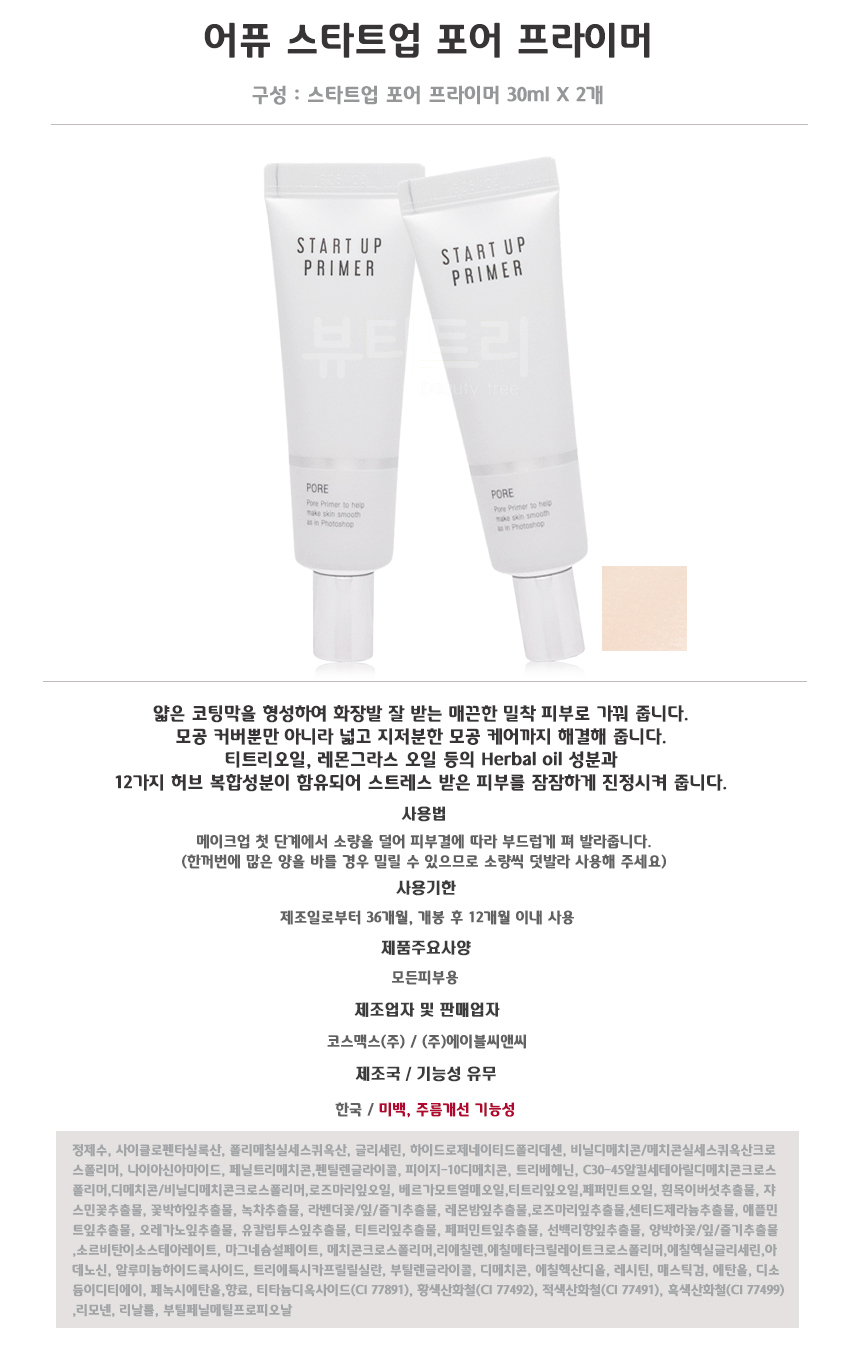 A'pieu Startup Pore Primer 30ml + 30ml / 어퓨 스타트업 포어 프라이머 30ml + 30ml