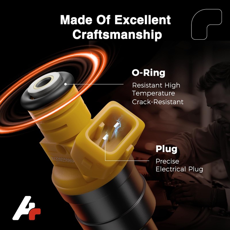 - [Fuel Injectors for Enhanced Performance & Efficiency]: Our fuel injectors engineer with high-hardness alloy steel and high-density, heat-resistant fluororubber seals to ensure durable, leak-free operation under extreme temperatures. And the fuel injectors feature a precision 4-hole nozzle and advance atomization technology, they deliver accurate fuel measurement and a finer mist for optimized combustion, contributing to potentially smoother engine operation, responsive power, and better fuel economy when properly installed and matched to your engine.