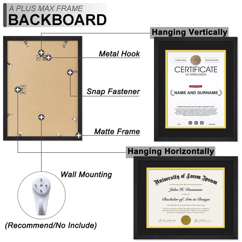 - Certificate Frame Mat: Black & gold mat frame fit Masters Bachelor and more 8.5 by 11 degree certificate.