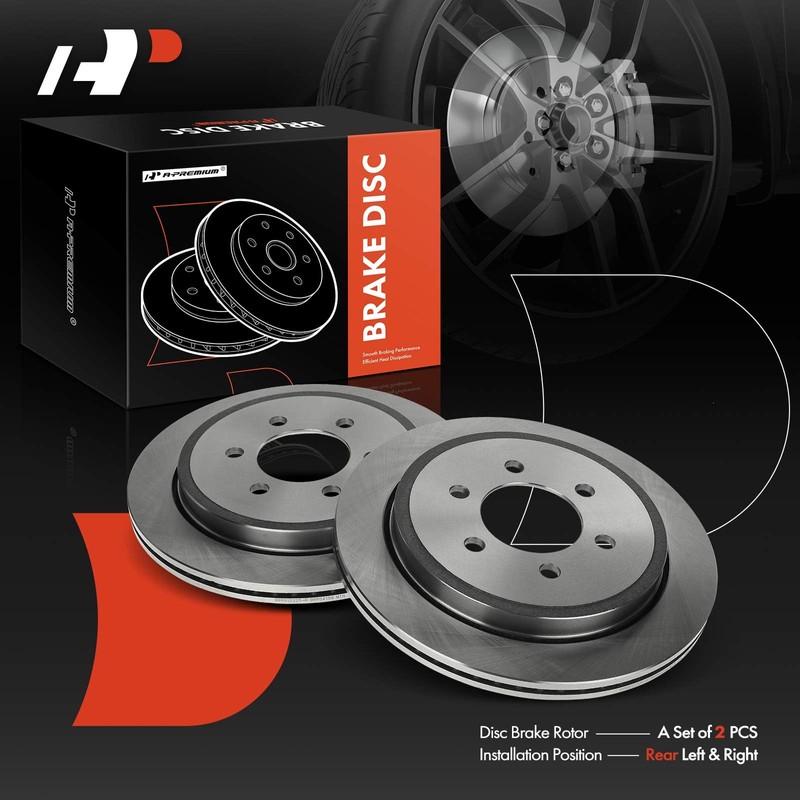 A-Premium 13.46 inch (342mm) Rear Vented Disc Brake Rotors Compatible with Select Ford and Lincoln Models - Expedition 2002-2006 (From 3/19/02), Navigator 2002-2006 (From 3/18/02), 2-PC Set
