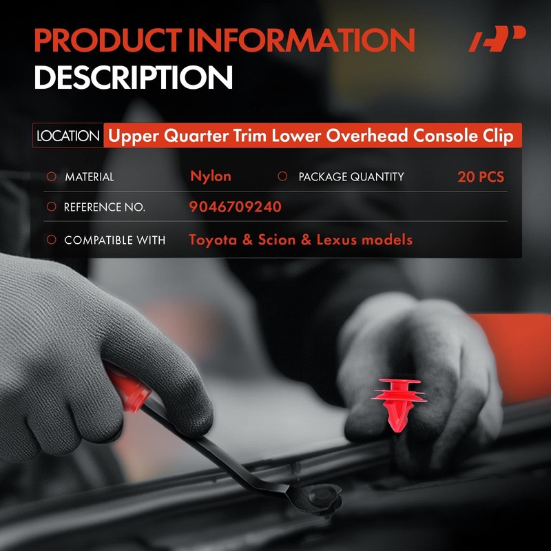 A-Premium 20PCS Nylon Upper Quarter Panel Retainer Clips Compatible with Toyota Camry, RAV4, RAV4 Prime, Corolla, Prius, Prius V, C-HR, Tacoma, Venza, Avalon & Lexus RX350 & Scion iQ - For 9mm Hole
