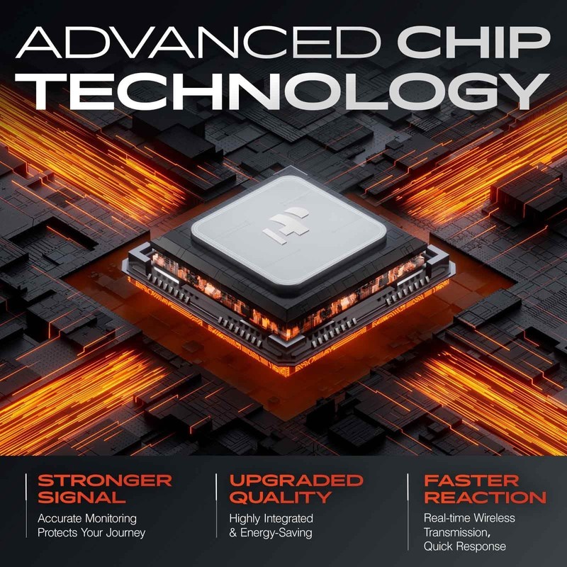 - [Precision Monitoring]: Real-time and accurate monitoring of tire pressure, equipped with a high-precision chip to ensure timely and accurate data transmission; Combined with long-lasting CR2050 battery, it provides an ultra-long life span, adapts to extreme environments from -40℃ to 120℃, and delivers stable and reliable performance. It ensures you can always stay informed about your tire conditions during every drive, enhancing driving safety.