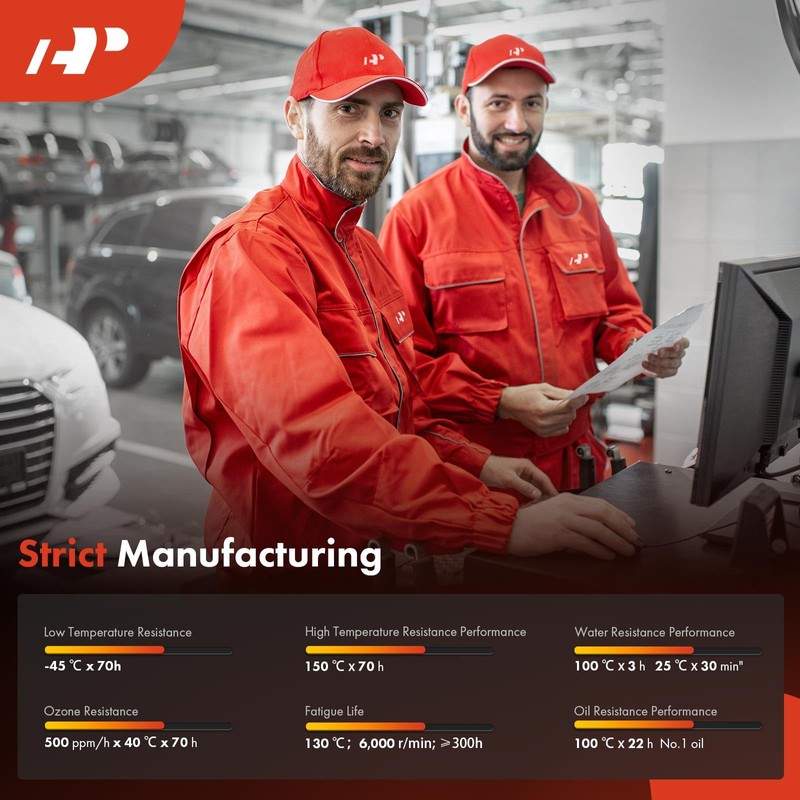 - [Advantages]: A-Premium's serpentine drive belt features premium EPDM rubber construction, engineered to resist cracking, corrosion, and wear from oil, grime, and contaminants. Its precision-engineered dimensions ensure optimal tension and alignment, reducing operational vibration and noise. Designed for tool-free installation, this belt integrates user-friendly design with industrial-grade reliability, delivering consistent performance in demanding environments