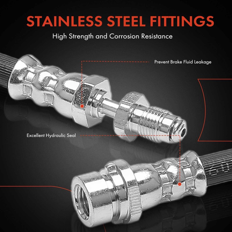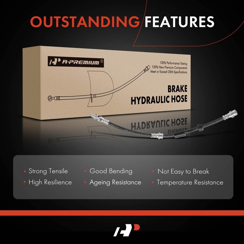 - [Superior Quality]: A-Premium Brake Hydraulic Oil Hose consists of EPDM rubber and stainless steel fittings, meeting DOT certification standards, Federal Motor Vehicle Safety Standards(FMVSS 106) and SAE J1401 Standards. Premium craftsmanship and materials ensure superior quality and durability, and excellent performance enhances the whole braking system.