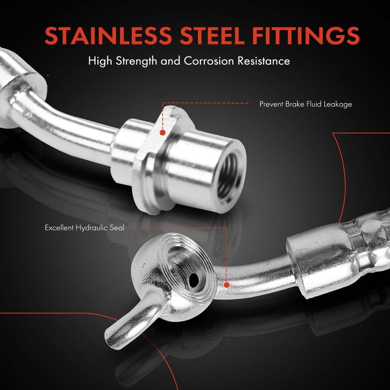 - [Superior Quality]: A-Premium Brake Hydraulic Oil Hose consists of EPDM rubber and stainless steel fittings, meeting DOT certification standards, Federal Motor Vehicle Safety Standards(FMVSS 106) and SAE J1401 Standards. Premium craftsmanship and materials ensure superior quality and durability, and excellent performance enhances the whole braking system.